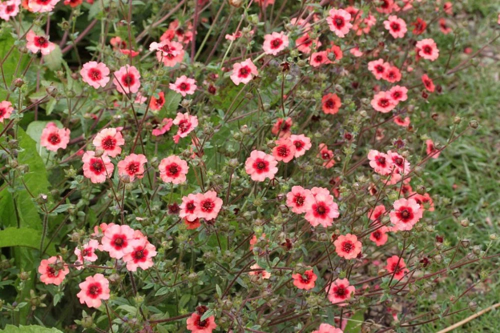 Очень выносливое растение, засухо- и морозоустойчивое. Цветки тёмно-розовые с контрастным малиновым глазком. Листья похожи на листья клубники.