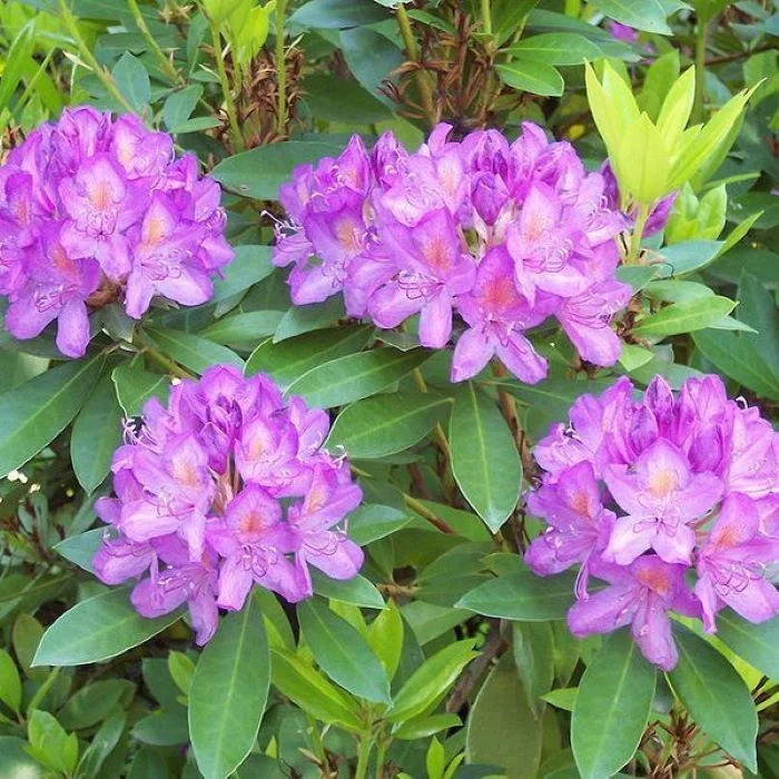 Вечнозелёный высокорослый кустарник с многоствольной кроной, достигающий 5–8 м в высоту. Листья плотные, кожистые, тёмно‑зелёные, обратноланцетовидные или широкоэллиптические (9–28 см длиной и 2–9 см шириной): сверху - гладкие и блестящие, снизу у молодых листьев - бархатистые, затем оголяющиеся. Цветки крупные (до 5 см), колокольчатые, сиреневато‑розовые или сиреневые с мелкими зеленоватыми пятнышками, собраны в щитковидные соцветия (10–15 см) по 8–20 штук. Цветёт с начала мая волнами до осенних заморозков (продолжительность одного цветения - до 3 недель). Отличается быстрым ростом (8–10 см в год), зимостойкостью (до −40 °C), но ядовит и плохо переносит засуху. Предпочитает солнечные или тенистые места, лёгкие или суглинистые почвы со слабой кислотностью; требует регулярного полива и весенней подкормки специализированными удобрениями.