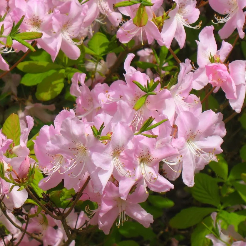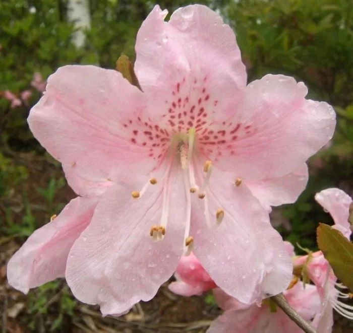 Листопадный кустарник высотой от 0,6 до 2 м (в природе иногда до 5 м), с раскидистой кроной и светло‑серой корой. Листья тёмно‑зелёные, клиновидно‑обратнояйцевидные (4–10 см длиной), осенью ярко окрашиваются. Цветёт в апреле–мае крупными (5–8 см в диаметре) бледно‑розовыми цветками с пурпурными крапинками, собранными по 3–6 в соцветия; цветение длится 2–3 недели. Выдерживает морозы до −26 °C (корневая система — до −9 °C), в умеренном климате зимует без укрытия, но цветочные почки могут повреждаться поздними заморозками. Предпочитает полутень, защищённые от ветра места и дренированные почвы (переносит слабокислые и нейтральные, лучше многих рододендронов адаптируется к известковым). В культуре с 1865–1893 года, используется как декоративное и медоносное растение.