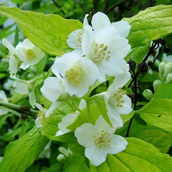 Чибушник венечный Ауреус обращает на себя внимание не только во время цветения. Его золотисто-лаймовая листва выглядит привлекательно с весны до осени. Нежные салатовые листья способны внести свежесть и разнообразие в любую кустарниковую композицию, и в одиночном виде этот симпатичный кустарник необычной цветовой гаммы смотрится оригинально. Чибушнику характерен хороший темп роста, около 30 см в год в ширину и высоту, но кустарник не большой и вырастает всего до 1,5 м. Зацветает кустарник в мае-июне. В течении 3х недель, разноситься душистый аромат, который привлекает пчел и бабочек. Кремово-белые цветки достигают в диаметре 3,5 см. Этот сорт чубушника предпочитает слабокислые почвы, хотя хорошо развивается и на любых других. Для полноценного ухода нужно умеренно поливать растение, не допуская образования застойных вод, и регулярно удалять старые побеги. Высаживают одиночно и в группах, для создания живых изгородей и шпалер.
