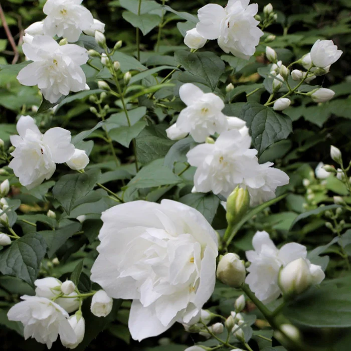 Листопадный красивоцветущий кустарник из Золотой коллекции французского селекционера Виктора Лемуана. Цветёт роскошными кистями полумахровых цветков до 4 см в диаметре! Насыщенный сладкий аромат слышен издалека. Цветение позднее, в конце июня – начале июля. Растёт в виде вертикального куста с поникающей ассиметричной кроной. Высота взрослого куста 1,5 м. Гибрид отлично растет в городских парках и скверах. Предпочитает хорошо освещенные участки с плодородными дренированными почвами. В тени – вытягивается и хуже цветет. Не требователен к составу почвы, не переносит переувлажнения и засоления почвы. Нуждается в омолаживающей и формирующей обрезке. Ослепительно смотрится в качестве солитера и в массовых посадках.