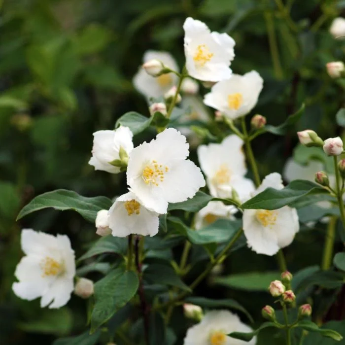 Компактный листопадный кустарник высотой 0,8–1 м и диаметром кроны около 1 м с плотной шаровидной формой. Отличается мелкими тёмно‑зелёными листьями и обильным цветением: в июне–июле на побегах появляются многочисленные простые белые цветки диаметром 2–3 см с нежным, тонким ароматом. Растёт умеренно быстро, предпочитает солнечные или слегка затенённые места; хорошо развивается на плодородных, дренированных почвах со слабокислой или нейтральной реакцией. Обладает высокой зимостойкостью, устойчив к городским условиям. Не требует сложной обрезки достаточно санитарной весной и лёгкой формирующей по мере необходимости. Идеально подходит для небольших садов, бордюров, низких живых изгородей и контейнерного выращивания; эффектно смотрится в групповых посадках и миксбордерах.