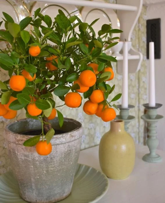 Каламондин выглядит особенно красиво, когда на нем дновременно появляются плоды и распускаются цветки.