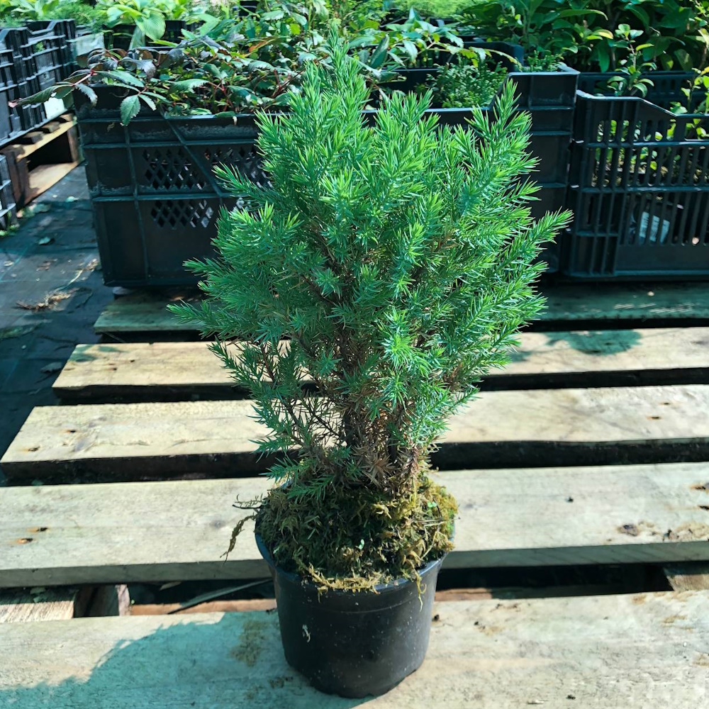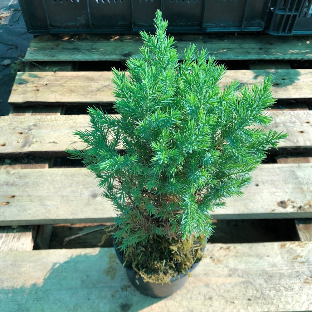 Китайский можжевельник представляет собой карликовое деревце. Стройный конус увенчивается плотной симметричной кроной. Она складывается из тонких, растущих под острым углом, веток. Острые тонкие иголки отличаются мягкостью и окрашены в зелено-голубой цвет.