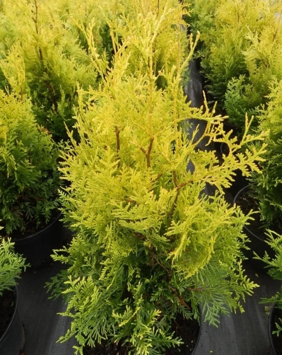 Туя западная Голден Брабант (Thuja occidentalis Golden Brabant) - золотисто-желтый вариант известного сорта туи западной Брабант. Быстрорастущий конусовидный хвойный кустарник, высотой более 3м и диаметром до 1,5м. Чешуйчатая хвоя золотисто-желтая, сохраняет свой цвет зимой и летом. Не страдает от солнечных ожогов. Предпочитает умеренно влажные, хорошо дренированные почвы. Хорошо переносит стрижку и условия города.
