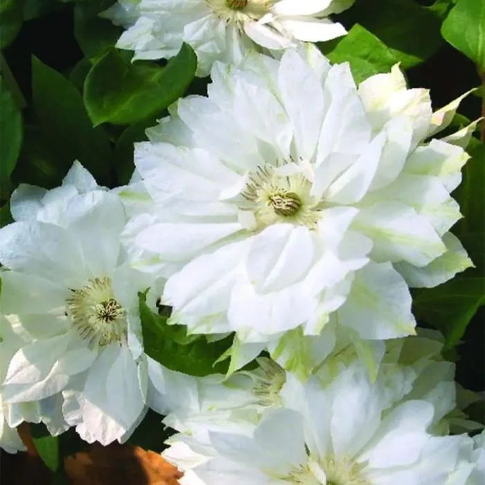 Мощный быстрорастущий сорт для вертикального озеленения с вьющейся лиановидной формой. Достигает высоты 350 см, обладает зелёной листвой и крупными (14–18 см) махровыми цветками шаровидной формы. Цветки чисто‑белые, с лёгкими светло‑зелёными пятнами у центра лепестков и жёлто‑коричневыми тычинками. Цветение обильное, двукратное: первая волна в мае–июне, вторая в августе–сентябре. Сорт зимостойкий (зона 4, до −35 °C), относится ко II группе обрезки (слабая). Идеально подходит для декорирования арок, заборов, зданий и террас.