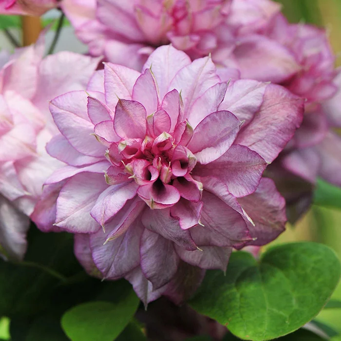 Супер махровый красавец. Пушистые шары из множества лепестков. Более пышная волна цветения – с весны до середины лета. Множество махровых цветков из изящных заостренных светло-розовых лепестков с розово-бордовым кантом распускаются на прошлогодних побегах. Во вторую волну – цветение на побегах текущего года. Цветки одиночные и простые. Отлично подходит для вертикального озеленения.