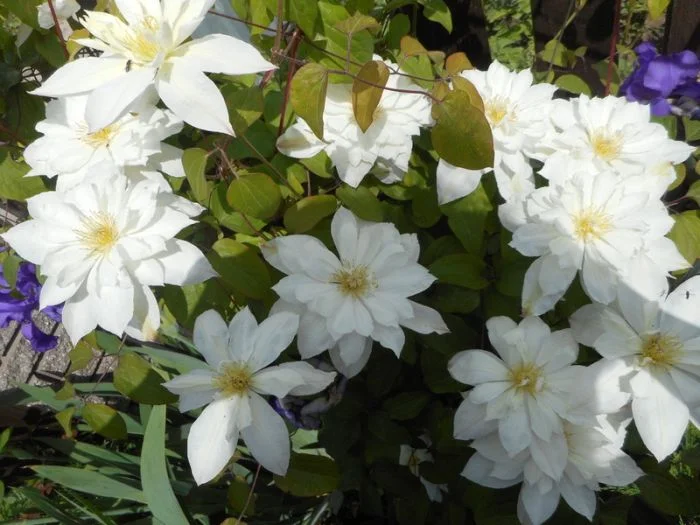 Цветки белые, крупные, одиночные или полумахровые, приподнятые, смотрят вверх, диаметром 5-7 см. Побеги высотой 100-150 см, за опору сами не цепляются, оставленные без подвязки стелются по земле. Красиво переплетается с другими растениями. Цветение очень продолжительное, с июня и до морозов.