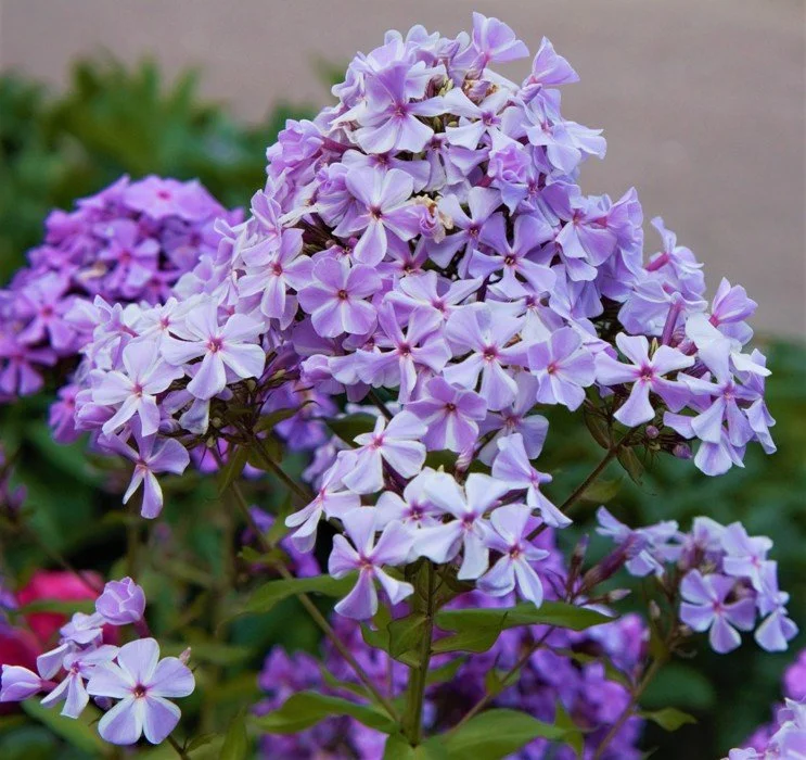 Флокс Аметист будто специально создан для спокойных романтичных посадок. Смотрится просто потрясающе в вечернем розово-фиолетовом саду! Обязательно приобретайте его, если вам нравится умиротворяющая цветовая палитра. Флокс томной, но насыщенной окраски, темно-лиловый, бархатистый, с более светлой лилово-розовой серединкой. Не выгорает! Поэтому лучше всего ему подойдут жаркие солнечные цветники. Цветки 4 см диаметром. Соцветия конические, плотные. Аромат сильный и очень приятный.