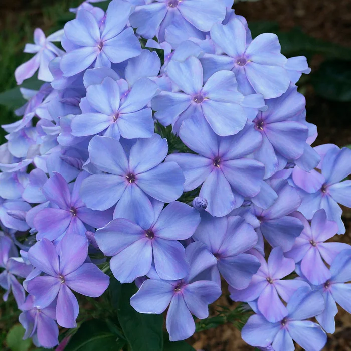 Незабываемая окраска! Соцветия из атласных цветков редкого сиренево-голубого оттенка с фиолетовыми бликами и пурпурной звездочкой в центре. Зацветает в 20-х числах июля. Отлично размножается и не болеет.
