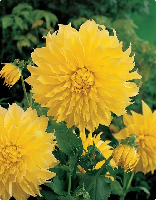 Очень крупные цветки ярко-желтой окраски освещают собой все вокруг! Эта георгина была неоднократно осыпана наградами в Европе и США.
