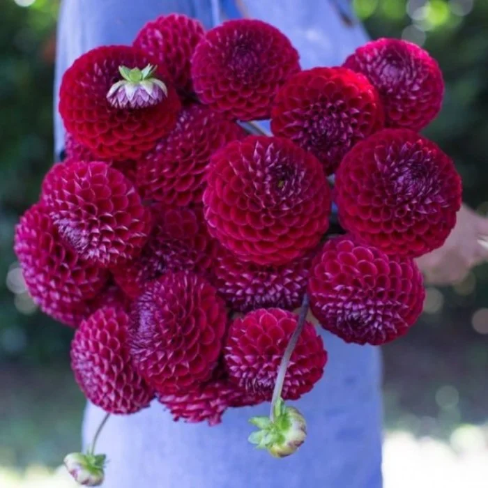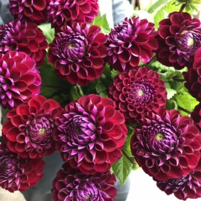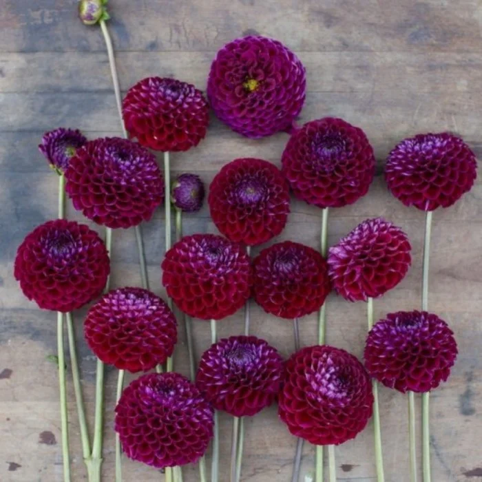 Крепкие цветоносы украшены крупными листьями, а на вершине красуется бордовый бутон. Культура хороша в срезе (сохраняет свежесть 5-12 дней), подходит для высадки в горшок, одиночных и групповых посадок. В миксбордере особенно прекрасна с растениями-дымками: гипсофилой и фенхелем. В букете или на улице вы не перестанете любоваться правильной формой каждого лепестка, который лег в основу помпонного цветка.