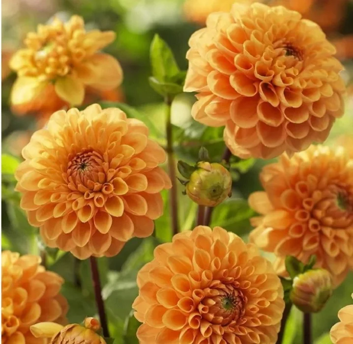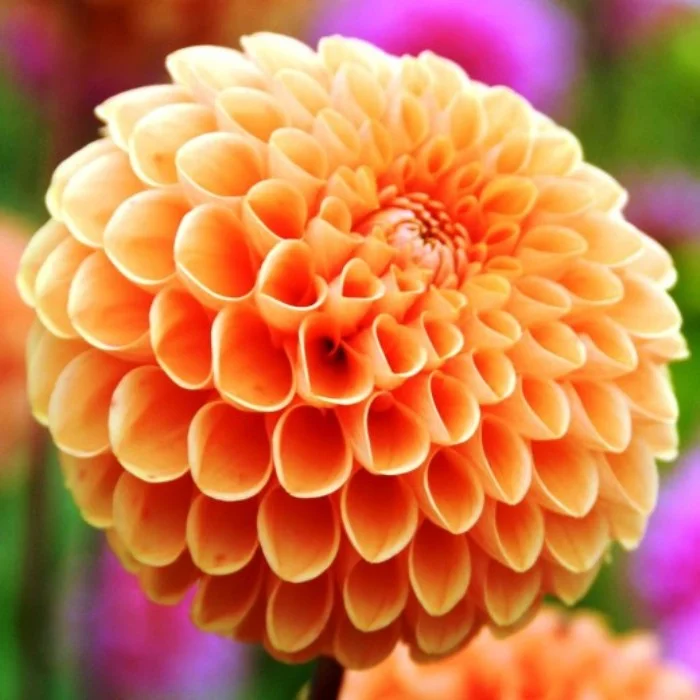Стильная георгина с лепестками лососево-оранжевого цвета превосходно смотрится в смешанных садовых композициях!