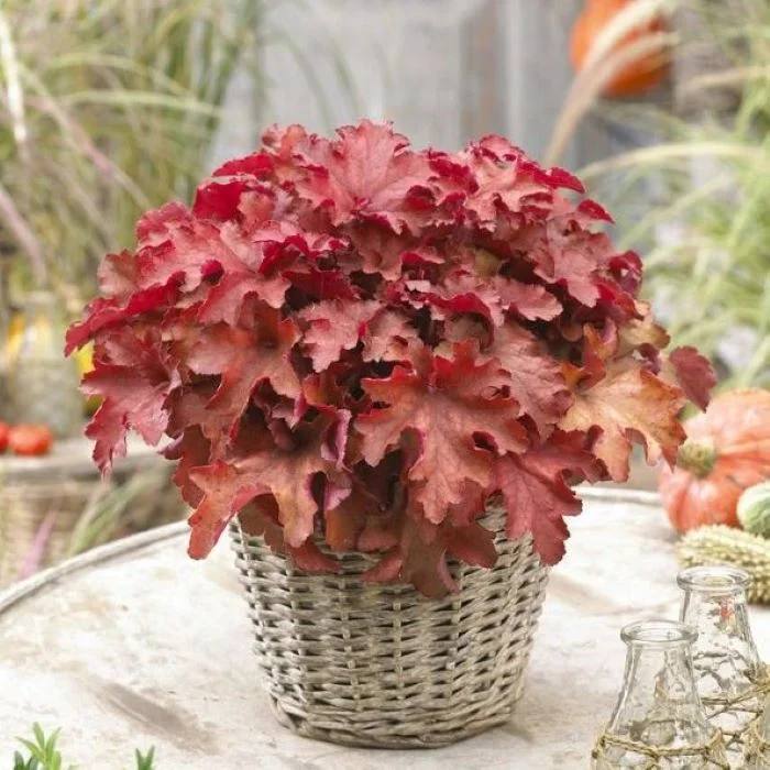Компактный многолетник, формирующий плотный кустик высотой около 20 см и шириной 30–40 см. Отличается декоративной гофрированной листвой приглушённых терракотовых и кирпичных оттенков. Цветёт с июня по август мелкими белыми цветками, собранными в метельчатые соцветия. Обладает хорошей морозостойкостью ( до −34 °C). Предпочитает утреннее солнце или ажурную полутень, слабокислую дренированную почву без застоя воды. Требует регулярного полива в засушливые периоды, весенней подкормки азотными удобрениями и фосфорно‑калийными составами перед цветением. В уход входят мульчирование (2–3 см) для сохранения влаги и осенняя обрезка сухих соцветий. Устойчива к большинству болезней, но иногда поражается тлёй и улитками (против них применяют мыльный раствор, инсектициды и барьерные методы). Хорошо растёт в контейнерах, подходит для бордюров, альпийских горок, миксбордеров и композиций с хвойными, а также для озеленения тенистых участков.