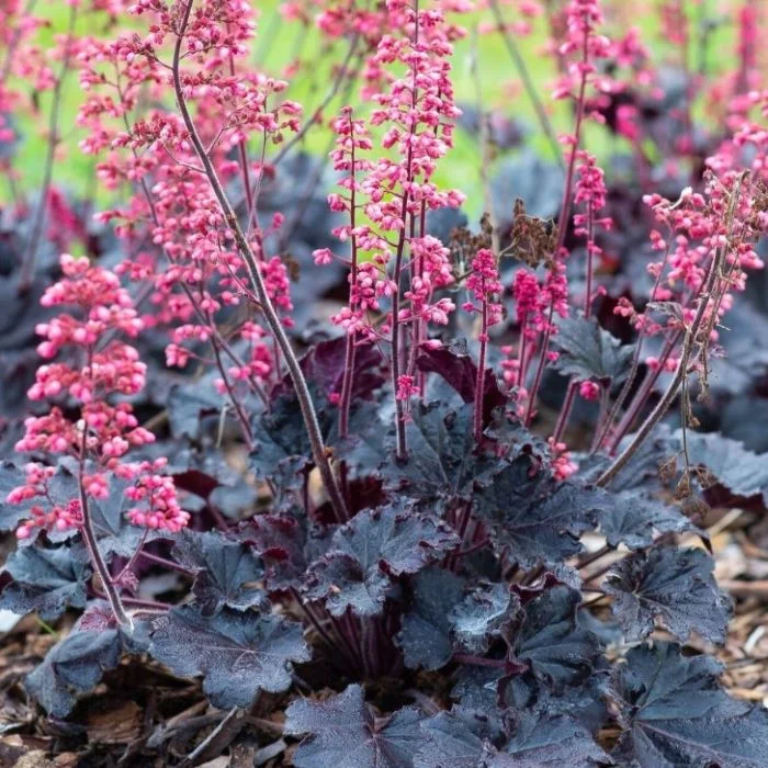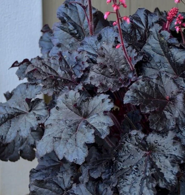 Многолетнее декоративное растение высотой 30-40 см с крупными глянцевыми листьями почти чёрного цвета с металлическим отливом и серебристыми прожилками; форма листьев  округлая, с зубчатым краем. Цветёт с середины весны до позднего лета (май–сентябрь) мелкими колокольчатыми цветками белого или розоватого оттенка, собранными в кистевидные соцветия на длинных цветоносах. Предпочитает полутень, но выдерживает и утреннее солнце (в южных регионах - только ажурная полутень); требует лёгкой, дренированной почвы с высоким содержанием гумуса и кислотностью pH 5,5–6,5. Полив умеренный, без застоя воды; почва должна оставаться слегка влажной. Морозостойка (до −34 °C). При посадке добавляют компост, размещают растения на расстоянии 30–40 см друг от друга; весной удаляют старые листья, мульчируют почву для сохранения влаги. Каждые несколько лет (в конце лета или начале осени) куст делят и пересаживают. Устойчива к болезням, но может поражаться тлёй и улитками. Подходит для миксбордеров, альпинариев, рокариев, бордюров и контейнерного выращивания; создаёт эффектный контраст с растениями со светлой листвой.