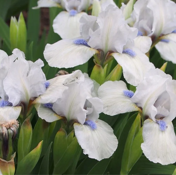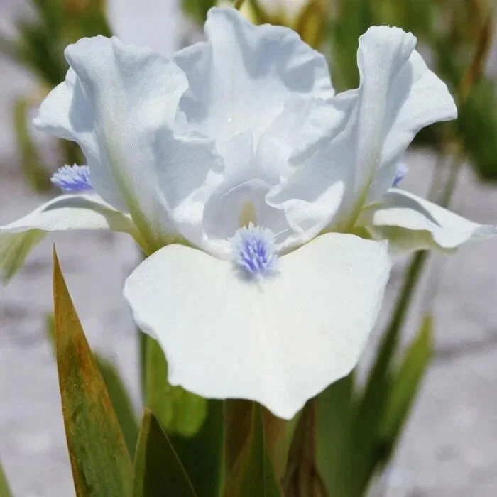 Многолетнее растение высотой 20–25 см с компактными кустиками и мечевидными листьями. Цветки диаметром 8–10 см отличаются нежным бледно‑голубым оттенком и яркой голубой бородкой. Цветение начинается в мае и продолжается до июня. Растение морозостойкое, предпочитает солнечные места или лёгкую полутень, защищённые от ветра. Для выращивания подходят хорошо окультуренные, рыхлые, дренированные почвы с нейтральной или слабокислой реакцией; при тяжёлых глинистых грунтах рекомендуется добавлять речной песок. Полив должен быть умеренным, без застойного переувлажнения. Для обильного цветения необходимо полное освещение, а в бесснежные зимы растение требует дополнительного укрытия. Идеально подходит для оформления бордюров, миксбордеров, рокариев и альпийских горок.