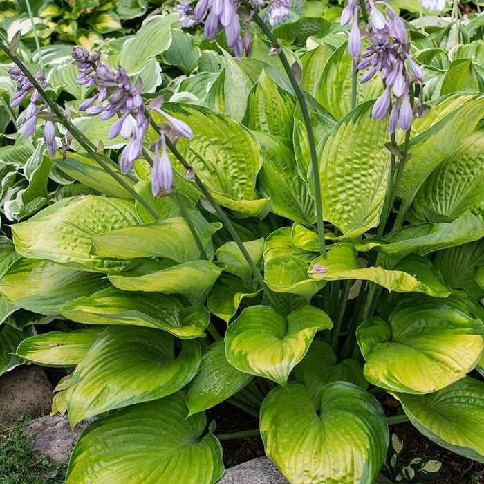 Взрослое растение достигает 75 см в высоту и разрастается до 1,75 м в ширину! Под огромным листом можно спрятать лист бумаги формата А4! Несмотря на значительные размеры листья выглядят очень элегантно. Удлиненные, с острым закрученным кончиком и глубоким продольным рифлением. Необычна и окраска! Широкая светящаяся золотисто-лаймовая полоса по краю темно-зеленого листа смотрится празднично и нарядно. Быстро разрастается и не боится засухи.