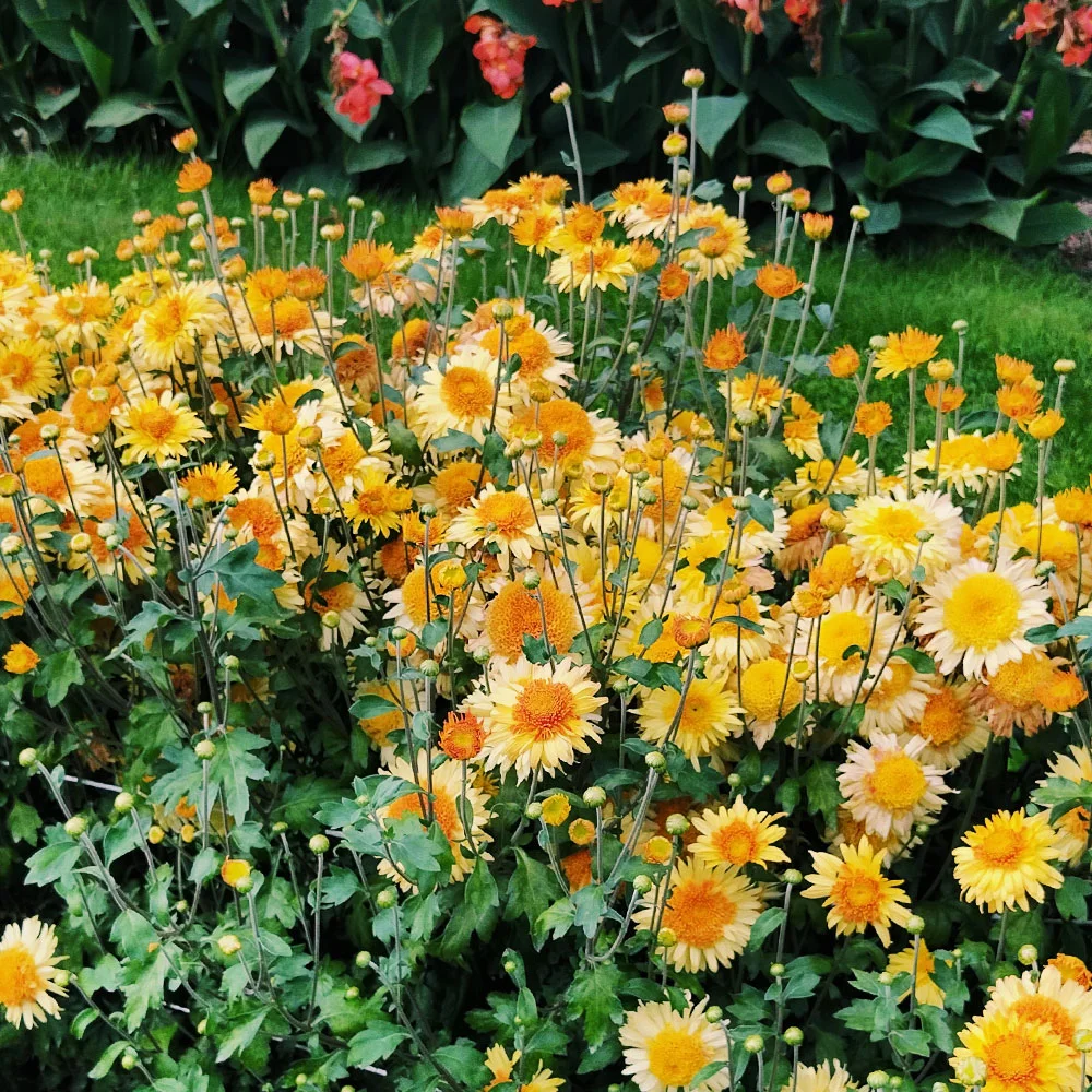 Издали может показаться, что это не хризантема, а нивяник. Анемоновидные соцветия-ромашки 7-8 см в диаметре состоят из приподнятых плотных центров из медово-бронзовых трубчатых лепестков, окружённых одним рядом длинных и плоских тускло-золотистых язычковых лепестков. Нежная Медовая Принцесса зацветает в первых числах августа, напоминая о приближающейся осени. Округлые кустики высотой 80 см, щедро осыпанные золотистыми ромашками, гармонично сочетаются с разноцветными хризантемами и другими многолетниками.