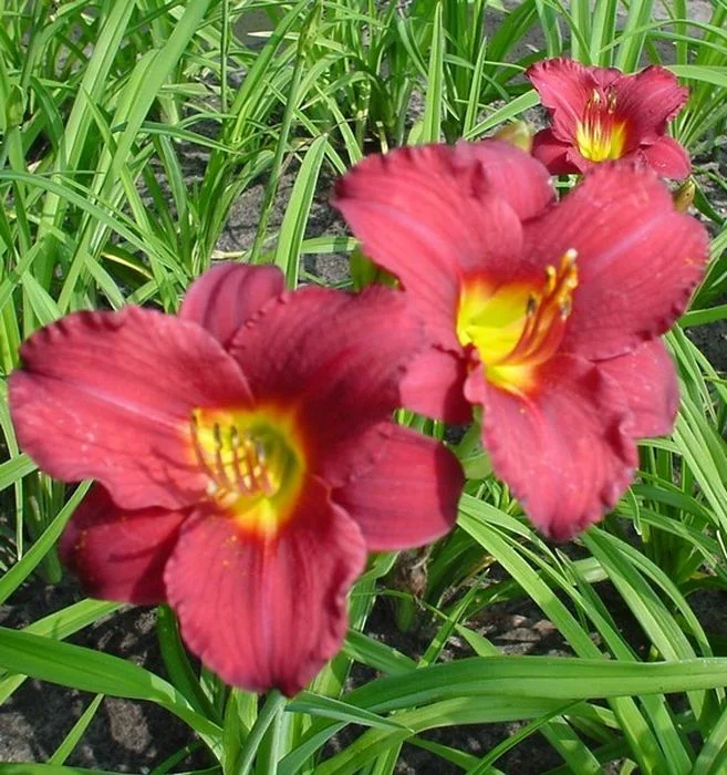 Лилейник гибридный Эйни Фенфайр - высота растения 40см, насыщенно-розовый с желтым горлом. Цветение июль-август.