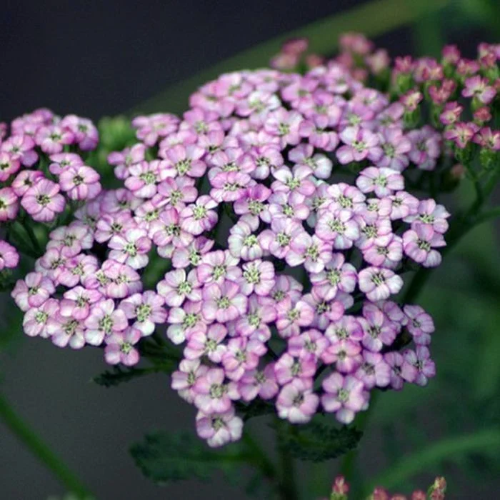 Цветки сиренево-розовые, в больших плоских соцветиях. Цветение обильное, длительное, в течение лета. Листья тёмно-зелёные, мелкорассечённые, ароматные. Стебли прочные. Прекрасно подходит для срезки и в качестве сухоцветов. Устойчив к засухе и жаре. Место солнечное. Почва дренированная.