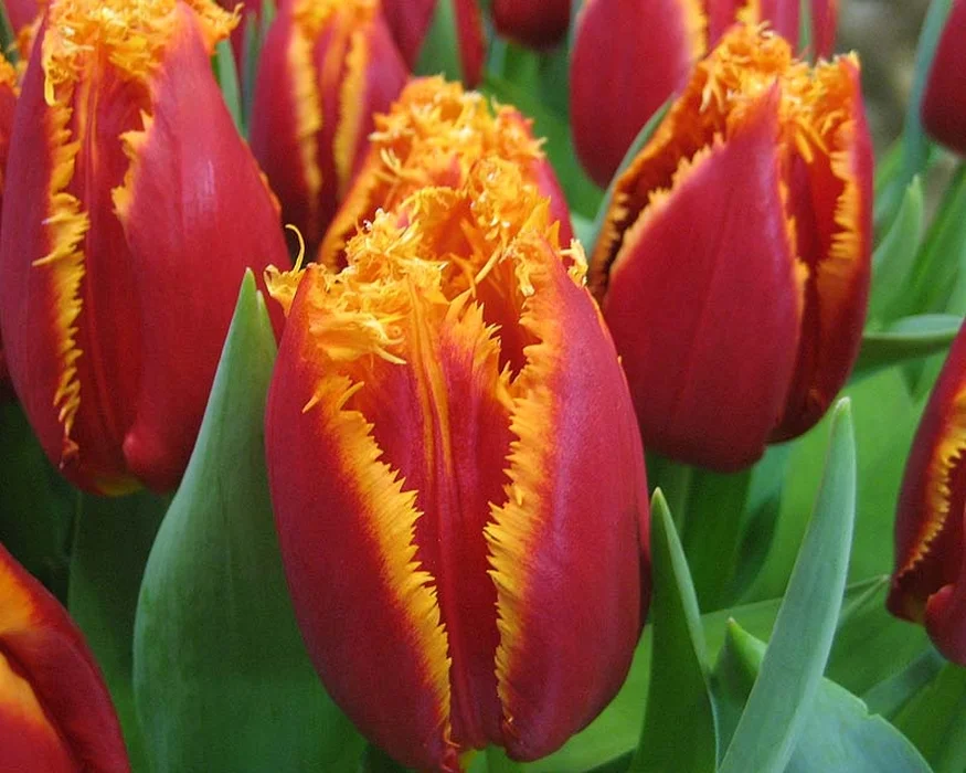 Он был выведен в 1998 году. Производитель: Vertuco BV. Этот тюльпан имеет цветки с уникальным внешним видом с причудливыми краями и четкими текстурами. Цветок изящной удлиненной формы с бахромой. Его окраска – темно-красная с фиолетовым отливом и желто-оранжевой бахромой. Как и другие позднецветущие сорта, цветки сорта ‘Фабио’ крупные, на высоких стеблях. Цветение продолжительное, около двух недель. Цветонос крепкий.