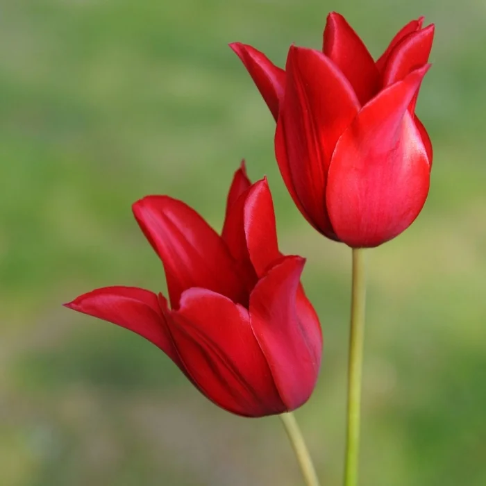 Блестящие шелковистые лепестки яркого алого цвета. Крупные изящные бокалы. Продолжительность цветения 2-3 недели.
