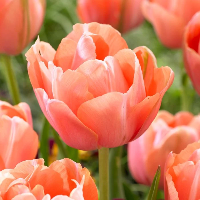 Премьера поразительно крупного махрового цветка в абрикосовых тонах! Благодаря высоким и крепким стеблям тюльпан прекрасно подходит для срезки.