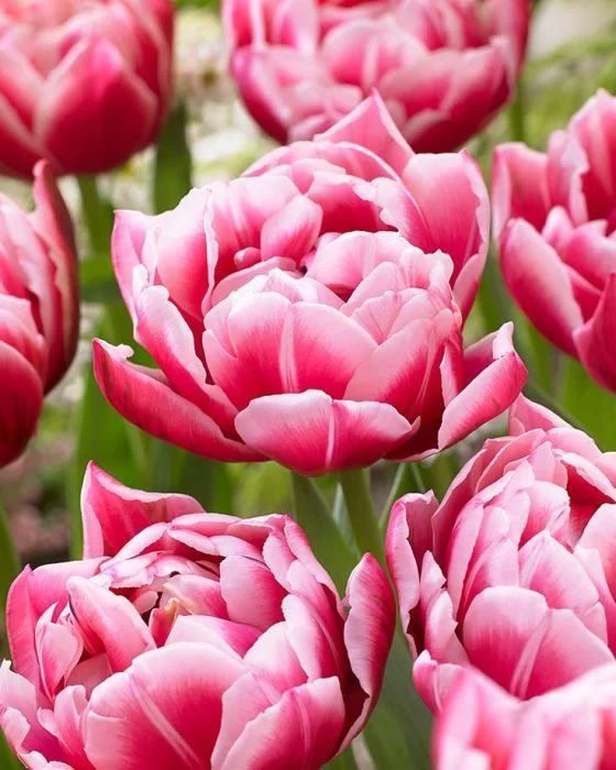 Сорт Коламбус относится к группе махровых ранних тюльпанов. Особенности класса: густомахровые бутоны (до 18-20 лепестков, иногда меньше), ранние сроки цветения (апрель – май), крупные бутоны около 10 сантиметров в диаметре. Цветение длится около 3 недель. Бутоны внешне похожи на пионы и розы.