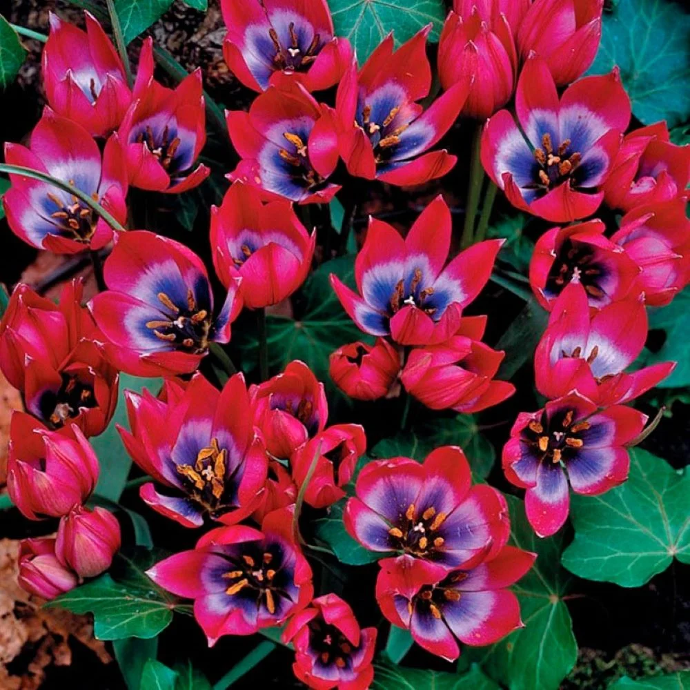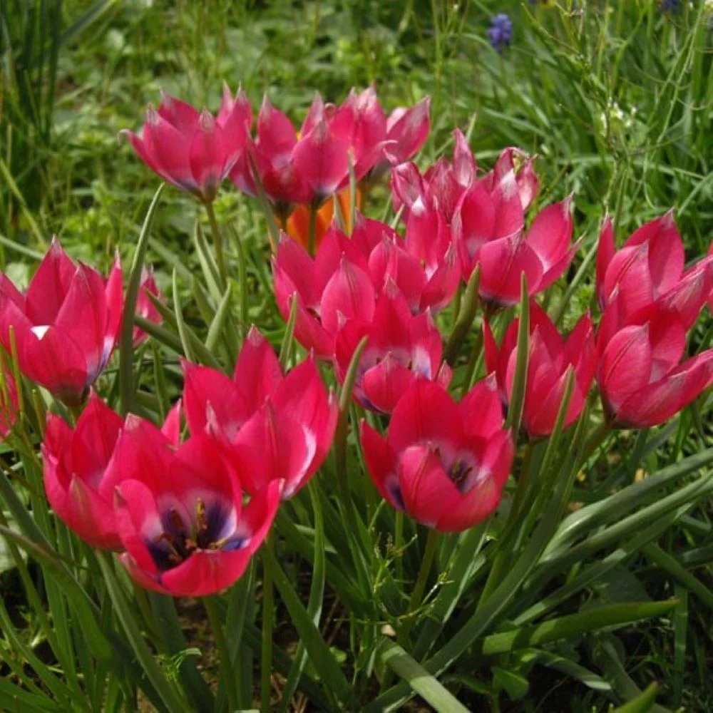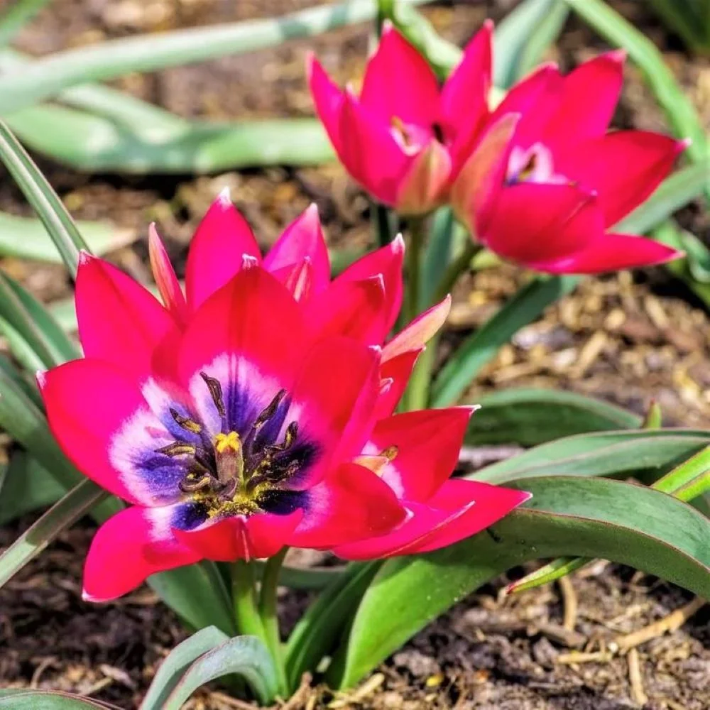 Нискорослый сорт достигает высоты до 20 см. Цветок имеет форму бокала, его высота составляет 5 см. Лепестки волнисто-складчатые, шелковистые на поверхности.  Цветок в распустившемся виде напоминает звёздочку. Окрас яркий, насыщенно-розовый, в центре светло-розовый с тёмно-синим основанием. Листья прикорневые, узкие темно-зеленого оттенка, что придает кусту оригинальность.  Сорт неприхотлив, хорошо переносит морозные зимы,не требуетс ежегодного выкапывания и просушивания луковиц летом. Благодаря своей миниатюрности  просто незаменимм в рокариях и на альпийских горках.