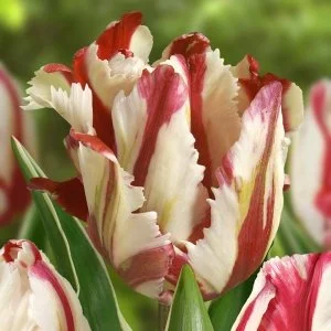 Экстравагантный супергофрированный тюльпан, соединяющий в своей окраске малиново-красные и кремовобелые "всполохи". Глянцевые зеленые листья с серебристой каймой идеально подчеркивают его величие. Особенно сильное впечатление он производит при посадке группами - трепещущие на ветру лепестки напоминают пляску огня. Устойчивый к непогоде сорт с длительным периодом цветения.