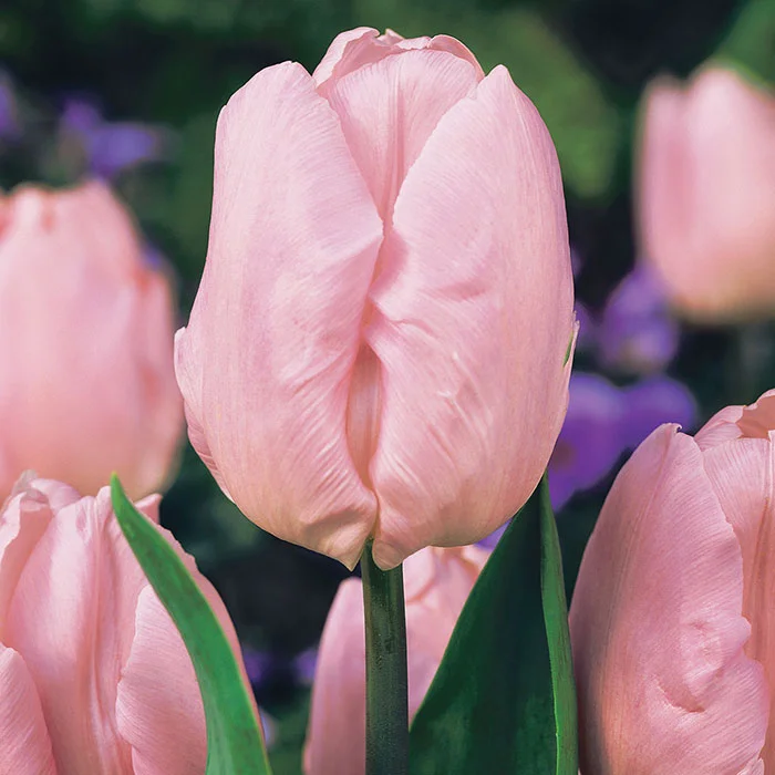 Тюльпан Кэнди Принс – красивый тюльпан, выглядящий по-разному в зависимости от освещения. А всё благодаря его глянцевым листьям, которые на солнце, отражая свет, светятся ярким нежным розово-персиковым цветом с лиловым оттенком. Постепенно, по мере цветения, на лепестках Кэнди Принс появляется небольшая серебристая кайма. Листва тюльпана не менее интересна самих цветов: она имеет синий оттенок, поэтому эффектнейше может выглядеть рядом с посадками хвойных! Необычный вариант для тюльпанов, однако, очень экзотичный. Тем более что весной не может быть эксцессов с хвоей, ведь она итак всегда зелёная!