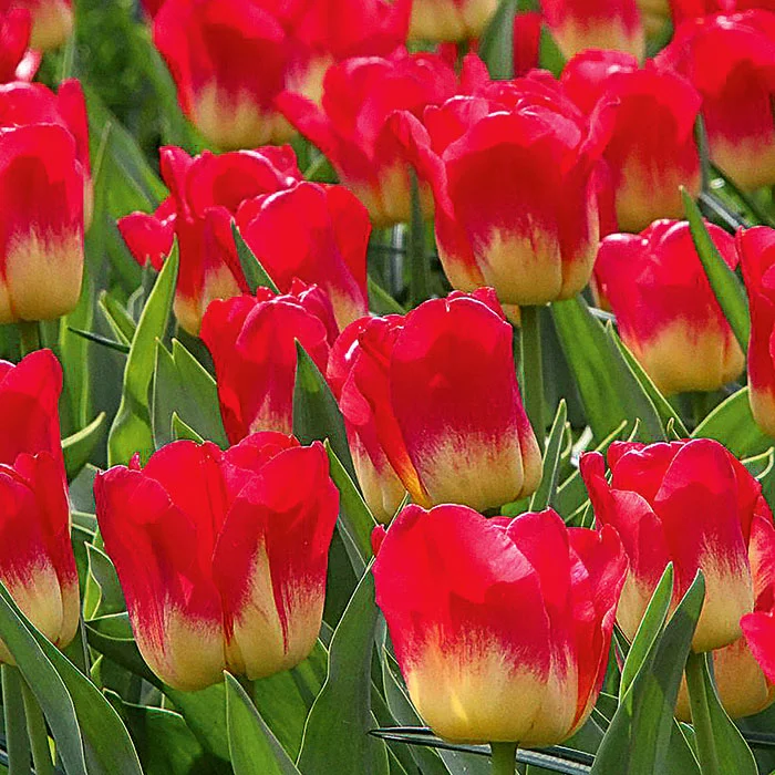 Сорт максимально раскроет декоративные возможности при высадки небольшой группы из 5-10 луковиц! Крупные бокалы с кремово-жёлтым прямоугольным основанием и контрастными малиновыми кончиками нежно «пламенеют» на клумбе. Идеально сочетаются с желтыми нарциссами и объединят группы красных и желтых тюльпанов.