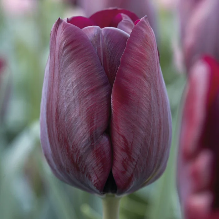 Рональдо – тюльпан с невероятно красивой окраской, похожей на цвет красного вина! На солнце его тёмные лепестки светятся искрящимся красным оттенком, а в более пасмурное или вечернее время приобретает ещё и фиолетовые нотки.