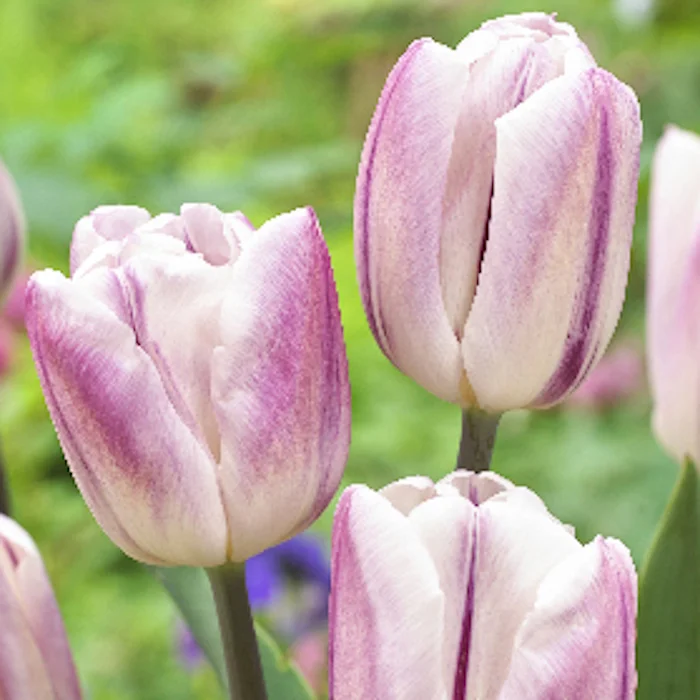 Тюльпан относится к группе Триумф и представляет собой изысканный сорт с эффектной окраской. Растение достигает высоты 45 см, формируя крепкий цветонос с крупным бокаловидным цветком. Особенностью сорта является необычная окраска лепестков: кремовый фон украшен плотным напылением фиолетово-сиреневого цвета. Высота бокала цветка впечатляет - она достигает 7–8 см.