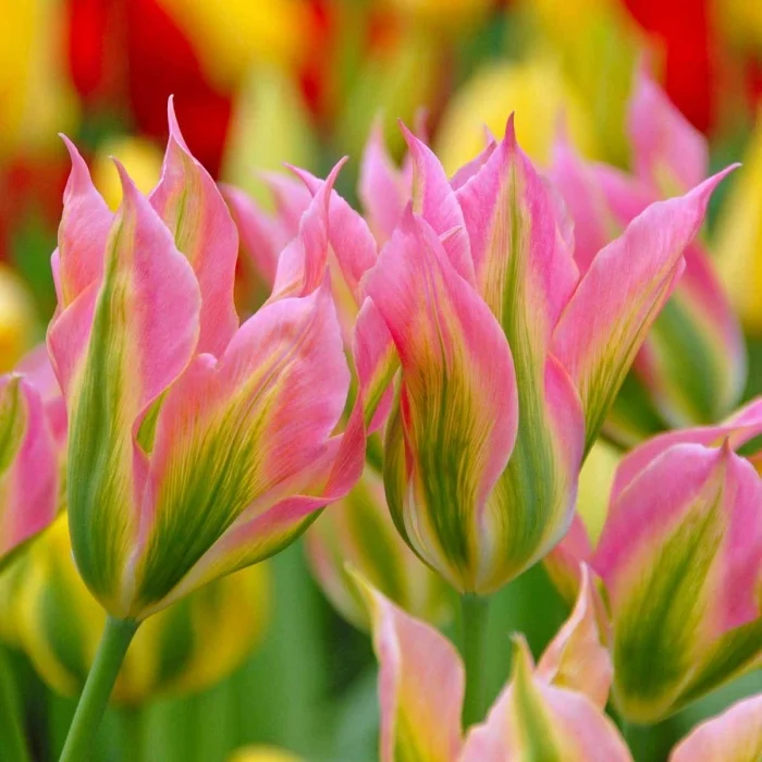 Изящная форма лилии и экзотическая окраска волнистых лепестков! Весь период цветения вы сможете любоваться красочной палитрой оттенков. В начале роспуска лепестки имеют нежно-розовую окраску, оттененную сочной зеленой полосой по центру и светлым донцем. С каждым днем оттенки розового становятся ярче и насыщеннее. Удивительный тюльпан можно с успехом выращивать не только на клумбе, но и в садовом контейнере.