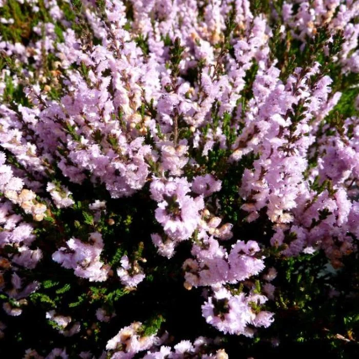 Растение образует раскидистый кустик высотой 25 сантиметров и шириной до 40 сантиметров. Уже в августе побеги покрываются довольно крупными (до 1,5 сантиметров) махровыми цветочками нежного бледно-розово-сиреневого оттенка. Цветущий кустик похож на пенное облачко, издающее терпкий медовый аромат. Многолетник часто размещают в вазонах, выставляя растение в период цветения в парадную зону участка. Популярны моноклумбы из вереска, превращающие пространство в дивный цветущий ковер.