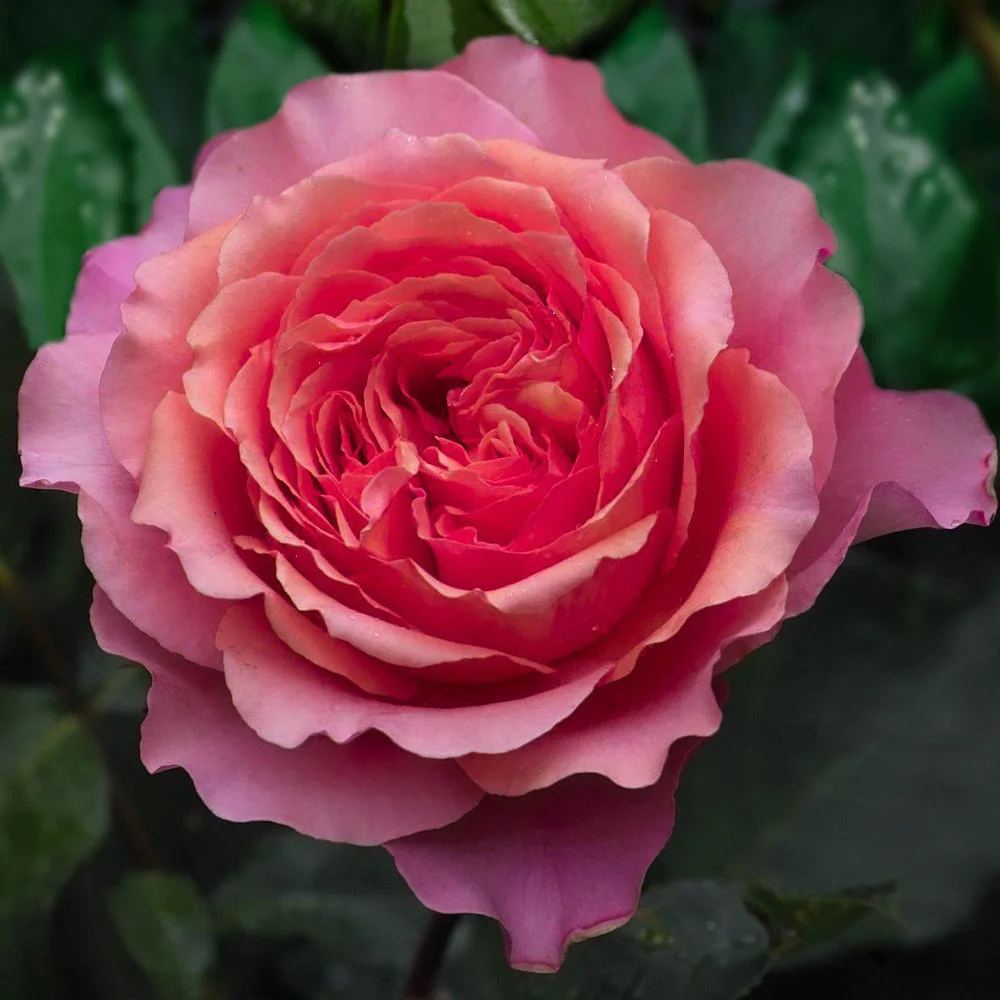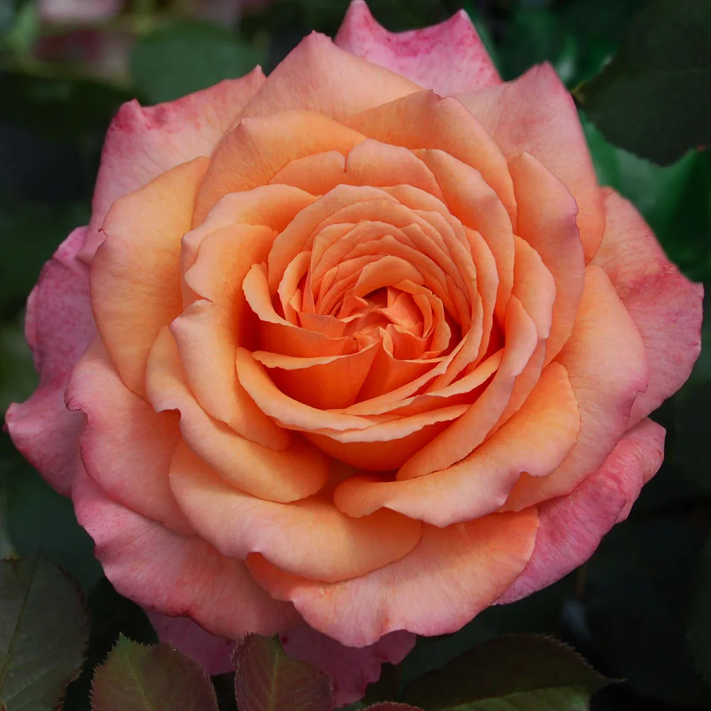 Шикарные чашевидные розы в абрикосово-персиковых тонах могут свести с ума! И не только размерами цветка и игрой тёплых оттенков на лепестках, а ещё и приятным ароматом. Диаметр цветочной чаши - 10-12 см! С каждым днём, края лепестков становятся более розовыми. Нежные цветы не боятся дождя. Куст полностью формируется за 2 года. Сорт устойчив к болезням, часто используется для групповых и смешанных посадок.