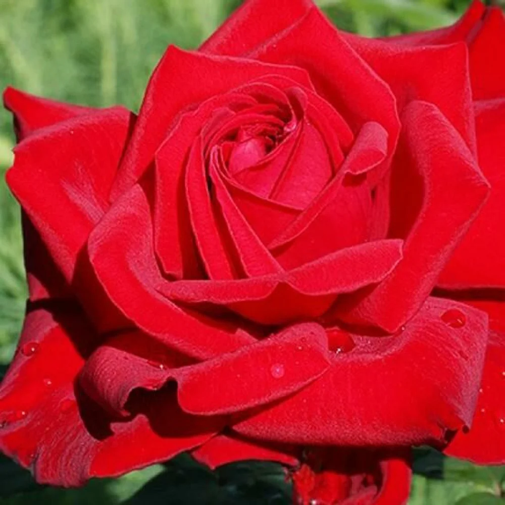Красная, крупная, классическая роза. Притягивает своим неповторимым видом. Слабо ароматная. Куст достигает 100см в высоту. Очень устойчив к заболеваниям, зимостоек. Размер цветка 12-14 см. Аромат нежный. Цветение повторное.
