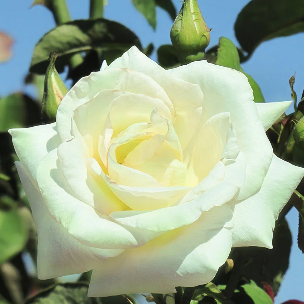 Классичееская ремонтантная чайно-гибридная роза с чашевидными цветками до 10 см в диаметре. Нижний ряд лепестков с нежными зеленоватыми бликами. Романтические одиночные цветки с лёгким сладковатым ароматом распускаются на кончиках вертикальных побегов  высотой до 90 см. Надёжный сорт для сада и для изысканных букетов. Срезка сохраняет свежесть в вазе две недели. Сорт устойчив к мучнистой росе и чёрной пятнистости.
