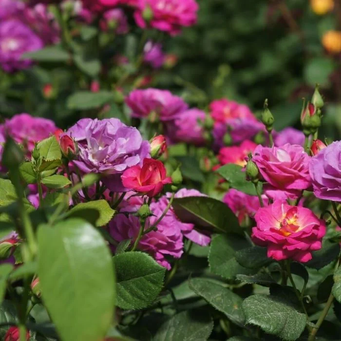 Современный сорт группы флорибунда (селекция Великобритании, 2004 год). Куст компактный, прямостоячий, высотой 60–80 см и шириной около 50 см, с плотной тёмно‑зелёной глянцевой листвой, устойчивой к болезням. Отличительная черта сорта необычная окраска цветков: от лавандово‑фиолетовой в центре до нежно‑голубовато‑сиреневой по краям, с лёгким осветлением к кончикам лепестков. Цветки средне‑махровые (25–30 лепестков), диаметром 6–8 см, собраны в соцветия по 3–7 штук. Аромат лёгкий, свежий, с едва уловимыми цитрусовыми нотками. Цветение обильное, повторное, продолжается с июня до осенних заморозков. Сорт демонстрирует хорошую устойчивость к мучнистой росе и чёрной пятнистости, среднюю зимостойкость. В регионах с холодными зимами рекомендуется лёгкое укрытие. Предпочитает солнечные места или лёгкую полутень, плодородные дренированные почвы. Подходит для миксбордеров, контейнерного выращивания, бордюров и небольших групповых посадок; эффектно смотрится в сочетании с розами белых, розовых и жёлтых оттенков.
