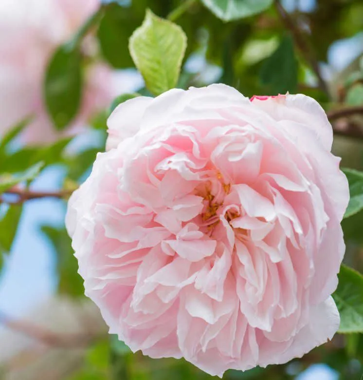 Цветки красивой формы, нежно-розовые, выгорают до очень бледно-розовых или почти белых. Они чашевидной формы, в полном роспуске демонстрируют тычинки, отчего похожи на кувшинки. Элегантно поникают, создавая общее впечатление невероятной деликатности и изящества. Нежно пахнут розовым маслом и миррой. Несмотря на нежный внешний вид, это сильнорослая роза, которая быстро превратится в довольно крупный клаймбер. Листва бледная, серо-зеленая. Очень устойчив к заболеваниям.