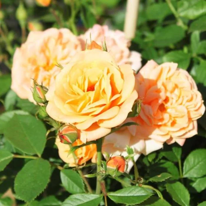 Эта роза отличается вновь и вновь появляющимися зонтиками цветков. Цветки очень прочные, их оттенок удивительно красиво изменяется от розового к абрикосово-оранжевому. Кусты компактные, крепкие. Листья невосприимчивы к мучнистой росе и черной пятнистости.