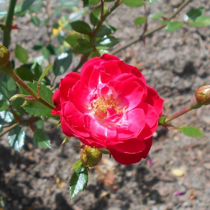 Эта миниатюрная роза была выведена американским селекционером Moore в 1956 году. Компактное растение имеет раскидистую форму и достигает высоты около 40-50 см. Куст обладает темно-зелеными блестящими листьями мелкого размера. Цветки этой розы малиновые, диаметром от 3 до 4 см, махровые, расположены в малоцветковых соцветиях по 3-5 штук на стебле. Они имеют интенсивный аромат и цветут повторно. Её аромат является средним по интенсивности. Растение требует регулярного полива (особенно в жаркую погоду) и подкормок минеральными удобрениями в течение всего сезона. Роза Литтл Буккаро также нуждается в обрезке, которую следует проводить каждый год после цветения. Одним из главных преимуществ розы Литтл Буккаро является её компактность. Это позволяет использовать её для создания бордюров или групповых посадок на небольших участках земли. Кустарник также обладает хорошей устойчивостью к различным заболеваниям, таким как мучнистая роса или черная пятнистость. Она также может пережить заморозки до -23°C. Роза Литтл Буккаро - это прекрасный выбор для создания компактных бордюров или групповых посадок на небольших участках земли.