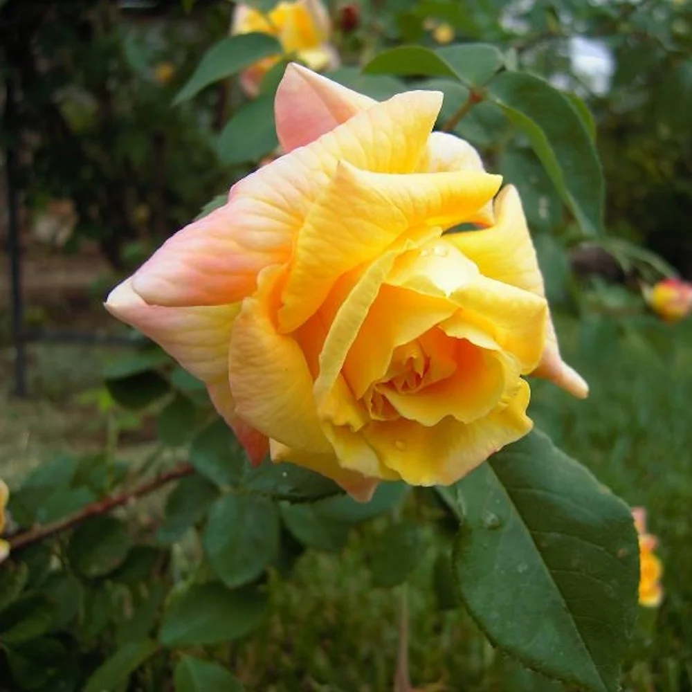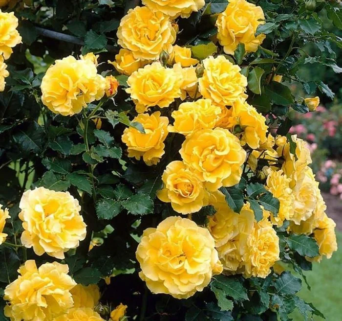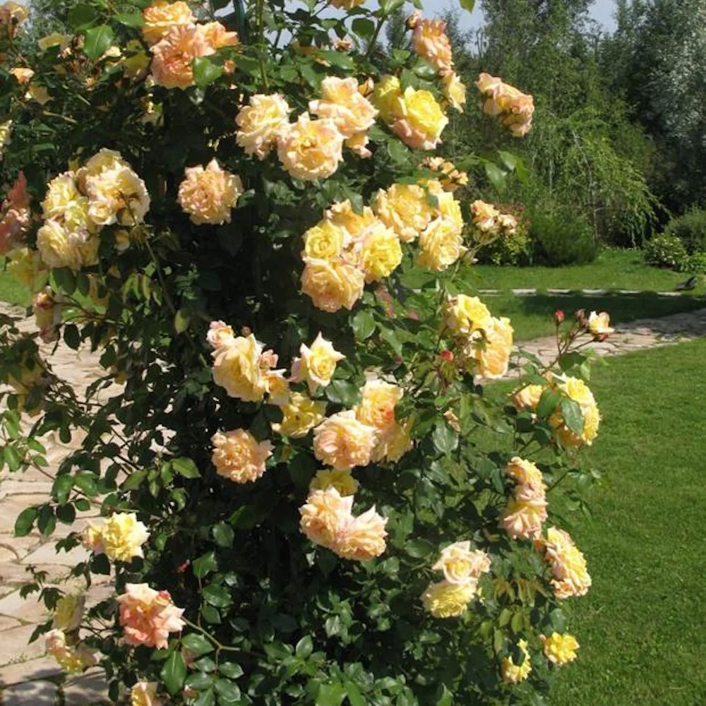 Плетистая роза Голден Парфюм имеет крупные, махровые цветы диаметром до 10 см, которые собраны в пучки по 3 или 5 штук.  Растение поражает  взгляд не только обильным цветением желтых махровых бутонов, но и насыщенным запахом. Как правило, растение пускают обвивать арку, забор или стену беседки, создавая уютный романтический уголок на участке. Высота растения достигает 2,5 м. Голден Парфюм отличается хорошей зимостойкостью и устойчивостью к распространенным заболеваниям.