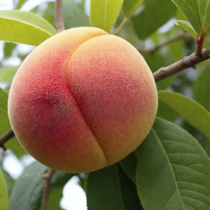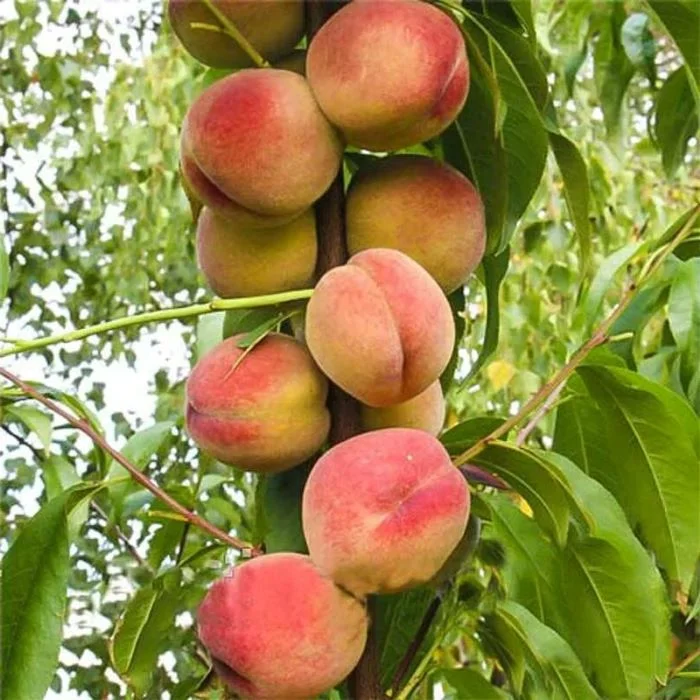 Это популярный сорт, который был создан благодаря трудам выдающегося селекционера И. В. Мичурина. Он работал над выведением зимостойких сортов плодовых культур, скрещивая их с дикими растениями Дальнего Востока. Дерево вырастает до 2 метров в высоту и формирует широкую крону с умеренным ветвлением. Ветви украшены узкими листьями с пильчатыми краями. В период цветения дерево покрывается нежными розовыми цветками диаметром 3–4 см. Плоды этого сорта имеют округлую продолговатую форму и окрашены в розовый цвет с алым румянцем. Средний вес одного плода составляет около 80 граммов. Кожица средней толщины, бархатистая, а мякоть сочная, сливочно-белая, с небольшими волокнами. Вкус сладкий с приятным послевкусием, аромат тонкий и нежный. Косточка среднего размера, отделяется средне. Сорт относится к позднеспелым - плоды созревают в конце августа. Первое плодоношение начинается через 2–3 года после посадки саженца. В возрасте 10–12 лет дерево может давать от 20 до 50 кг плодов, а в урожайные годы этот показатель может достигать 150–200 кг. Персик Мичуринский отличается высокой зимостойкостью и способен переносить холодные зимы. Он также устойчив к весенним заморозкам и основным болезням. Сорт самоплодный, что упрощает его выращивание. Плоды хорошо подходят как для употребления в свежем виде, так и для консервирования - из них получаются вкусные компоты, джемы, варенье и начинки для выпечки. Для успешного выращивания персику требуется солнечное место, защищённое от ветра, и рыхлая плодородная почва с нейтральной кислотностью. Полив должен быть регулярным, особенно в период засухи. Необходима формирующая и санитарная обрезка. К достоинствам сорта относятся высокая урожайность, устойчивость к болезням, способность к самоопылению и отличные вкусовые качества.