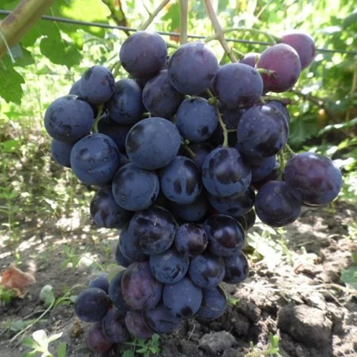 Сорт Фараон называют сортом любительской селекции. Получил его Е. Г. Павловский, скрестив Подарок Запорожью и Страшенский. Гибрид получился замечательный. Он известен своим крупным размером ягод и сладким вкусом. Гроздь коническая, очень крупная, весит в среднем 700-1000 граммов. Ягода крупная, круглая, черная. Вкус простой, гармоничный. Кожица не грубая и семян мало. Куст сильнорослый. Побеги вызревают рано и по всей длине. Сорт морозоустойчивый, легко переносит низкую температуру (до минус 23 градусов). Устойчивость к милдью и оидиуму оценена в три балла. Виноград  часто используется для производства свежего сока, десертов и вин.