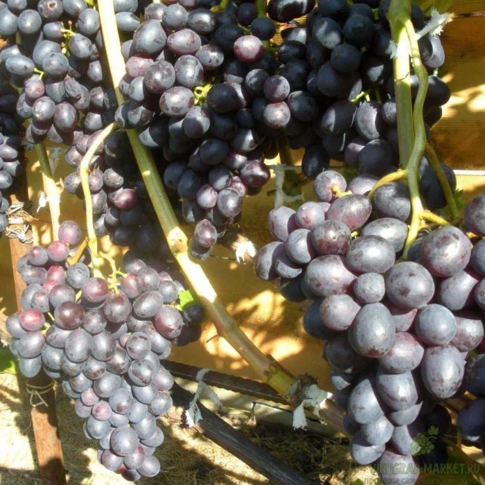 Столовый сорт сверхраннего срока созревания (105–110 дней), выведен селекционером‑любителем А. С. Сидуном путём скрещивания сортов «Жемчуг Саба» и «Риш баба чёрный». Первые плоды появляются в последней трети июля. Кусты формируют конические грозди средней плотности или рыхлые, массой 400–600 г. Ягоды овальные, по 4–5 г, тёмно‑розовые, при перезревании приобретают почти фиолетовый оттенок; мякоть плотная, кожица тонкая, вкус гармоничный. Урожайность высокая до 25–30 кг с куста. Сорт обладает средней устойчивостью к милдью, серой гнили и оидиуму (не менее 3,5 балла), требует профилактических обработок (не менее 3 раз за сезон). Морозостойкость умеренная (до −22…−25 °C), поэтому на зиму нуждается в укрытии. Для посадки важно обеспечить дренаж и закалить саженец; уход включает обрезку (осенью после сбора урожая и весной удаление повреждённых побегов), 4–5 поливов за вегетацию, не более 3 подкормок за сезон (калийными, азотными и фосфорными удобрениями).