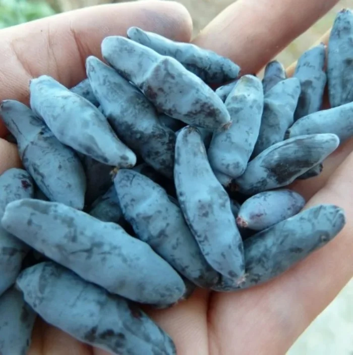 Новый среднепоздний сорт жимолости Голубой банан относится к группе очень крупноплодных сортов. Отличается  своими вкусовыми качествами. Мякоть у плодов мясистая, плотная, нежная, сочная. Вкус необычный – невероятно сладкий, даже немного приторный, без горечи и приторности. Достоинство этой разновидности является высокая урожайность (до 3,5-4,0 кг с куста), повышенная зимостойкость (до -45 градусов мороза). Устойчив к заболеваниям и вредителям. Плоды универсального применения – для свежего потребления и всех видов кулинарной переработки.