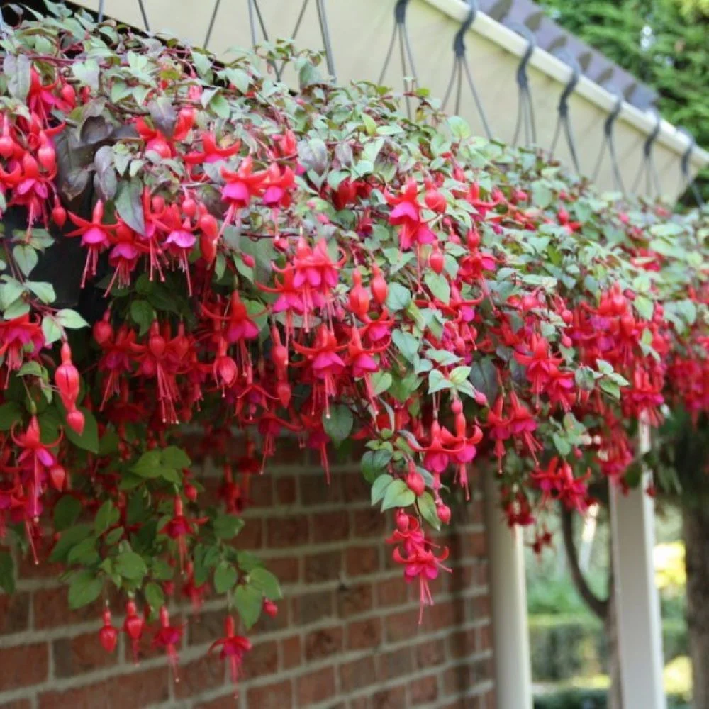 Фуксия Маринка — популярный ампельный (плетистый) сорт, известный своим обильным и продолжительным цветением ярко-красных цветов. Он идеально подходит для выращивания в подвесных корзинах, оконных ящиках и контейнерах, где его изящно свисающие побеги создают эффектный каскад. Размер куста обычно достигает высоты 15-30 см и ширины около 60 см. Цветёт обильно и непрерывно с лета до первых осенних заморозков. Привлекательность для опылителей: цветы богаты нектаром и привлекают пчел, бабочек и других опылителей. Привлекательность для опылителей: цветы богаты нектаром и привлекают пчел, бабочек и других опылителей. Требует регулярного полива, почва должна быть влажной, но хорошо дренированной. Для стимулирования обильного цветения рекомендуется подкармливать растение раз в две недели удобрениями с высоким содержанием калия.