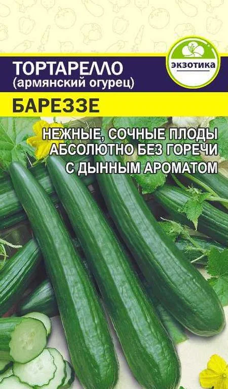Армянский чудо-огурец с экзотическим видом. Позднеспелый (70-80 дней) сорт для выращивания в открытом грунте и пленочных теплицах. Растение сильнорослое, главная плеть длиной 2,5-3,0 м. На растении вызревает 5-10 плодов. Плоды цилиндрические, с ярко-выраженной ребристостью, темно-зеленые, длиной до 50 см, массой до 1 кг. Мякоть хрустящая, очень нежная, сочная, сладковатая, без какого-либо намека на горечь, с великолепным дынным ароматом, освежает и тонизирует. Сорт характеризуется непрерывным плодоношением в течение всего теплого сезона, устойчивостью к настоящей и ложной мучнистой росе, перепадам температуры. Плоды употребляют в пищу в молодом возрасте, не допуская перезревания, в салатах, соленьях, консервации.